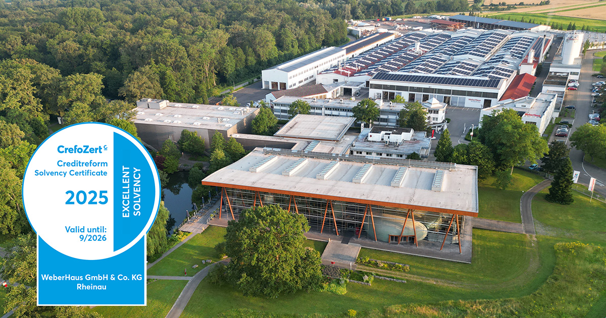 WeberHaus 2025 was awarded the prestigious CrefoZert certificate for the 15th time. This confirms the family business's outstanding creditworthiness, economic strength and secure future. Creditreform carefully scrutinised WeberHaus, including insolvency risk and solvency. The result: the prefabricated house manufacturer impressed in all areas. Only around two per cent of German companies have this prestigious award.