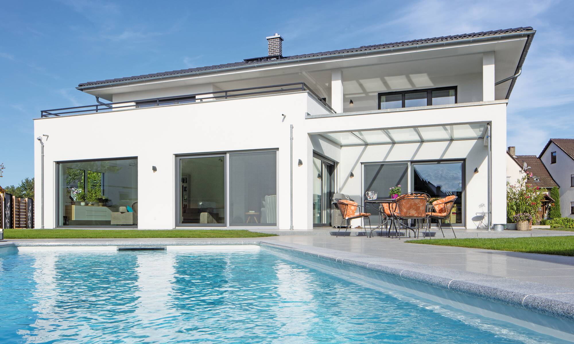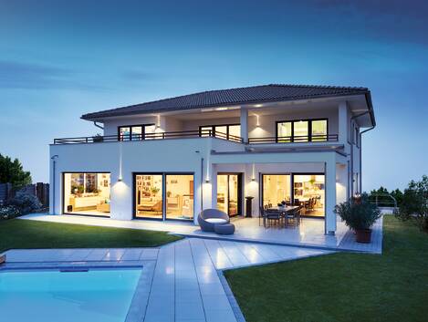 “The alarm system is important to keep our children safe. We have no jewellery or expensive possessions, but the kids are our priority. Although the security standards at WeberHaus are already very high due to the nine-fold locked front door and mushroom-pin locks, as well as other protective mechanisms in the windows, we also wanted an alarm system," Manfred explains.The family is also considering housekeeping by WeberHaus. The external blinds are already electrically operated and the glass-covered pergola can also be quickly protected from the sun by a burgundy awning. Controlled ventilation ensures a pleasant indoor climate, as Manfred explains, "Since moving in, the heating has only been used when the outdoor temperature drops below freezing, thanks to the excellent insulation of the ÖvoNatur building shell. The tiles and all floors are pleasantly warm due to the underfloor heating, so there are no annoying radiators and much more space for glass surfaces.”
