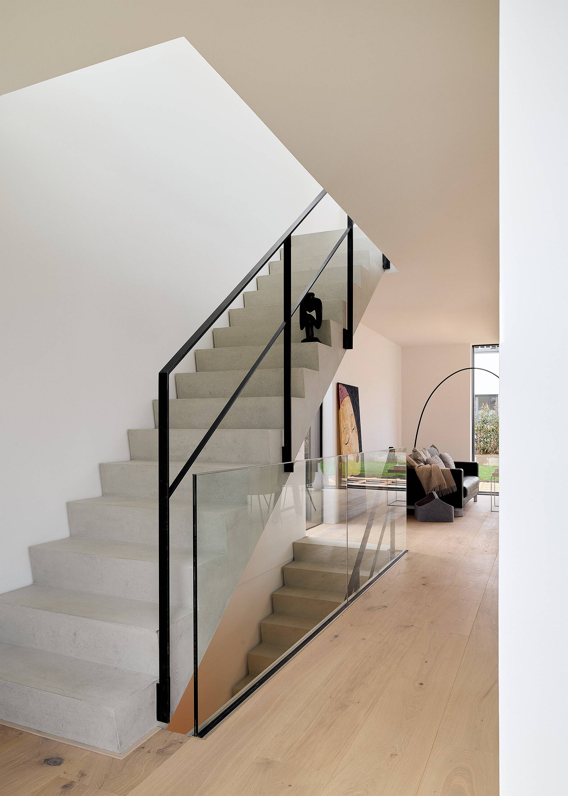 Rectilinear, stripped-down, rectangular building volumes form the basis of these four detached houses, each of which has a living area of about 175 m2. A modern pre-weathered timber facade emphasises the purist architecture. The houses feature high ceilings, room-high doors and windows. On the top floor, an open gable provides generosity in space. These architect-designed houses were designed by the architectural practice of Jacob & Spreng.