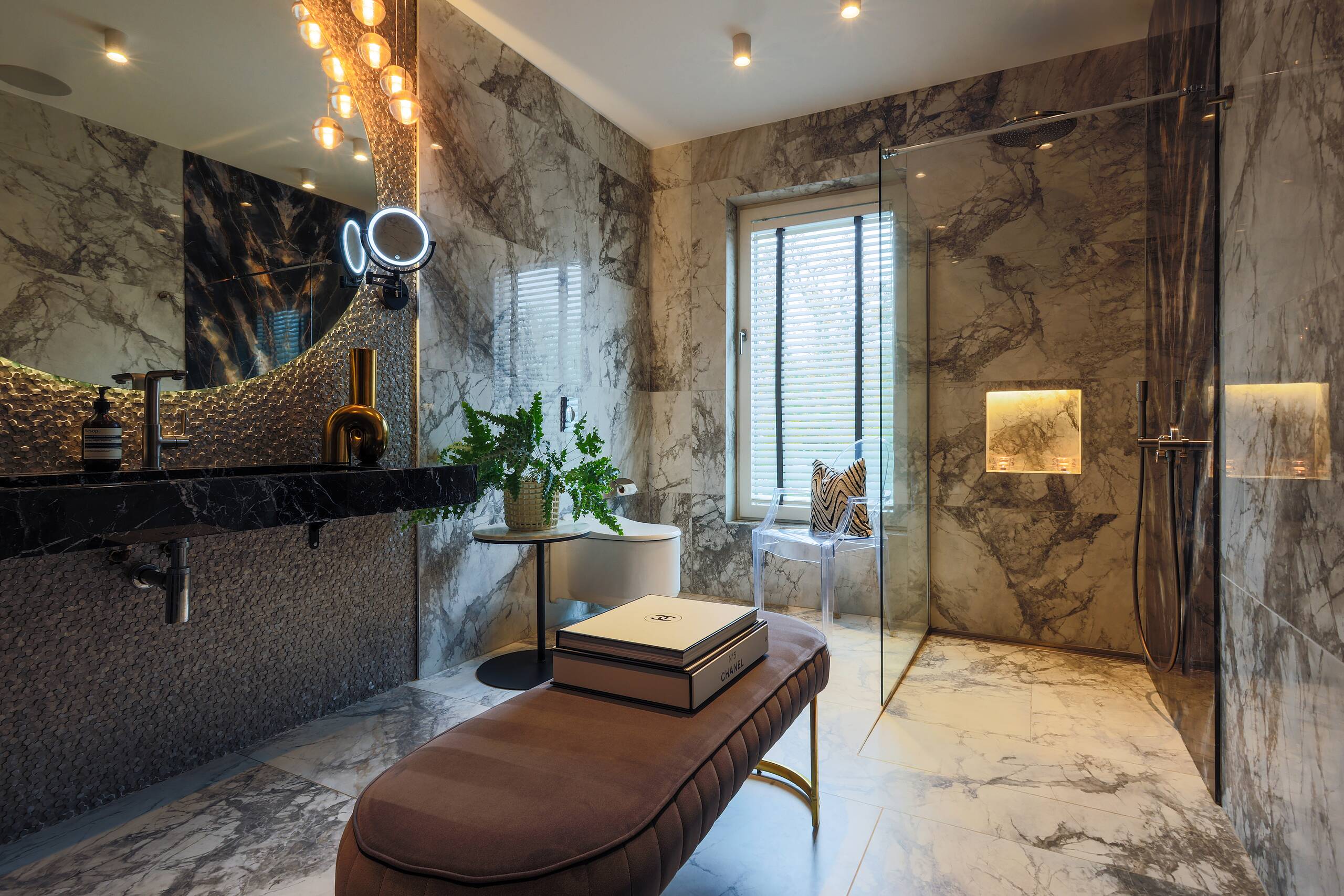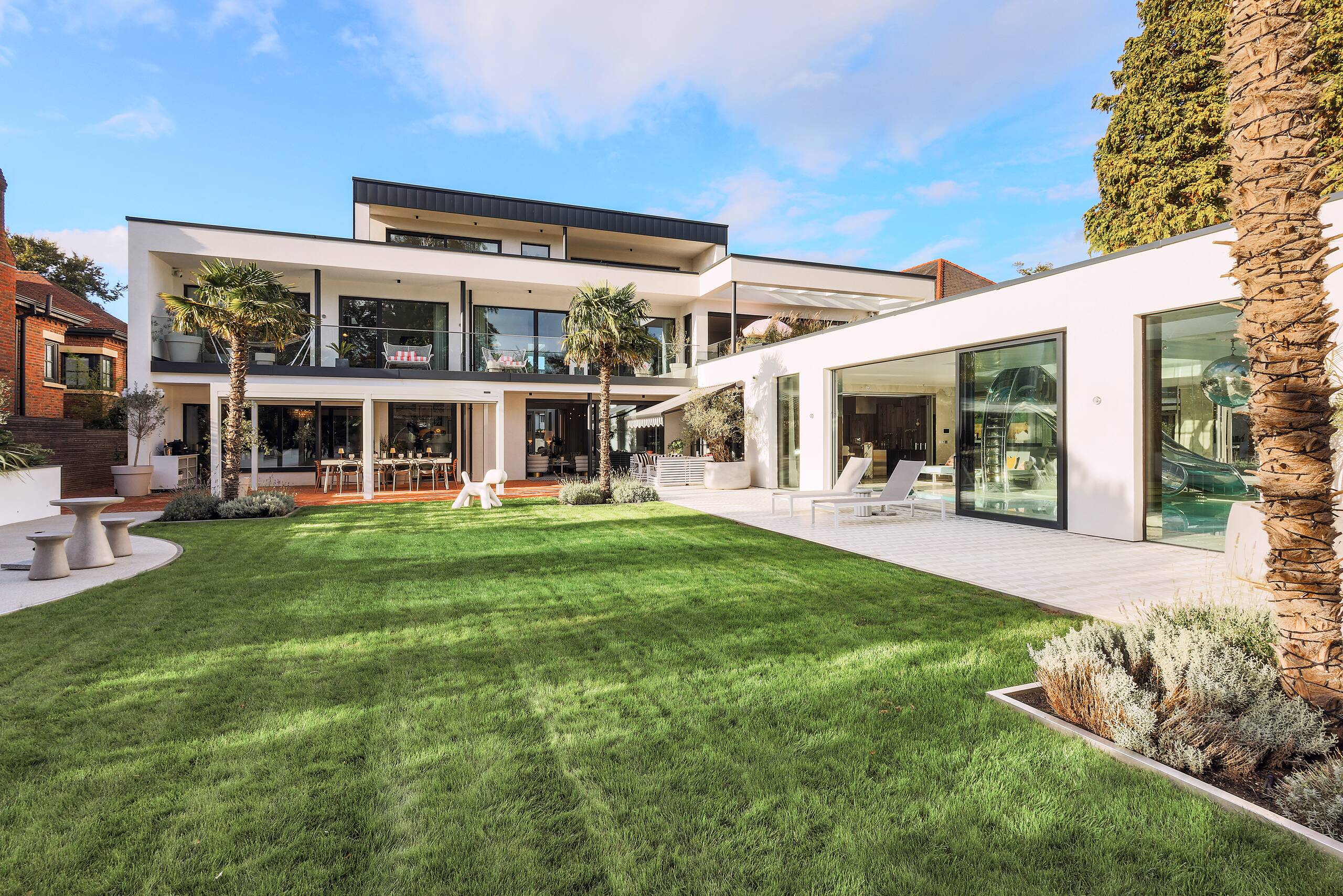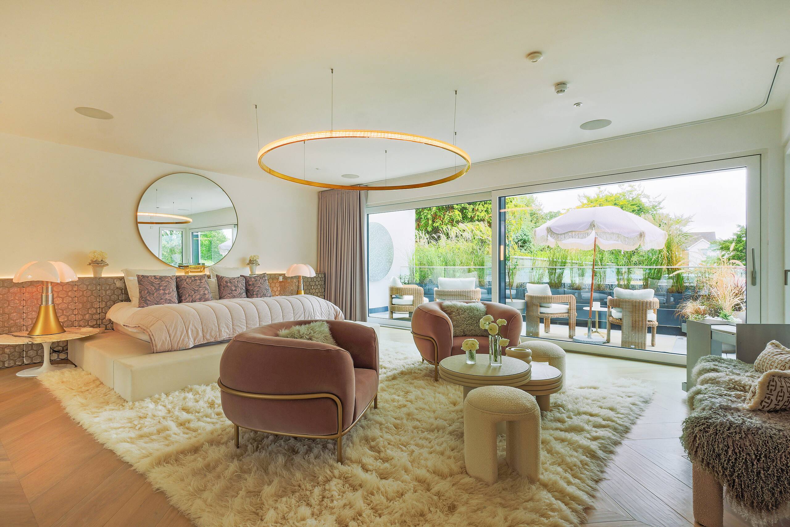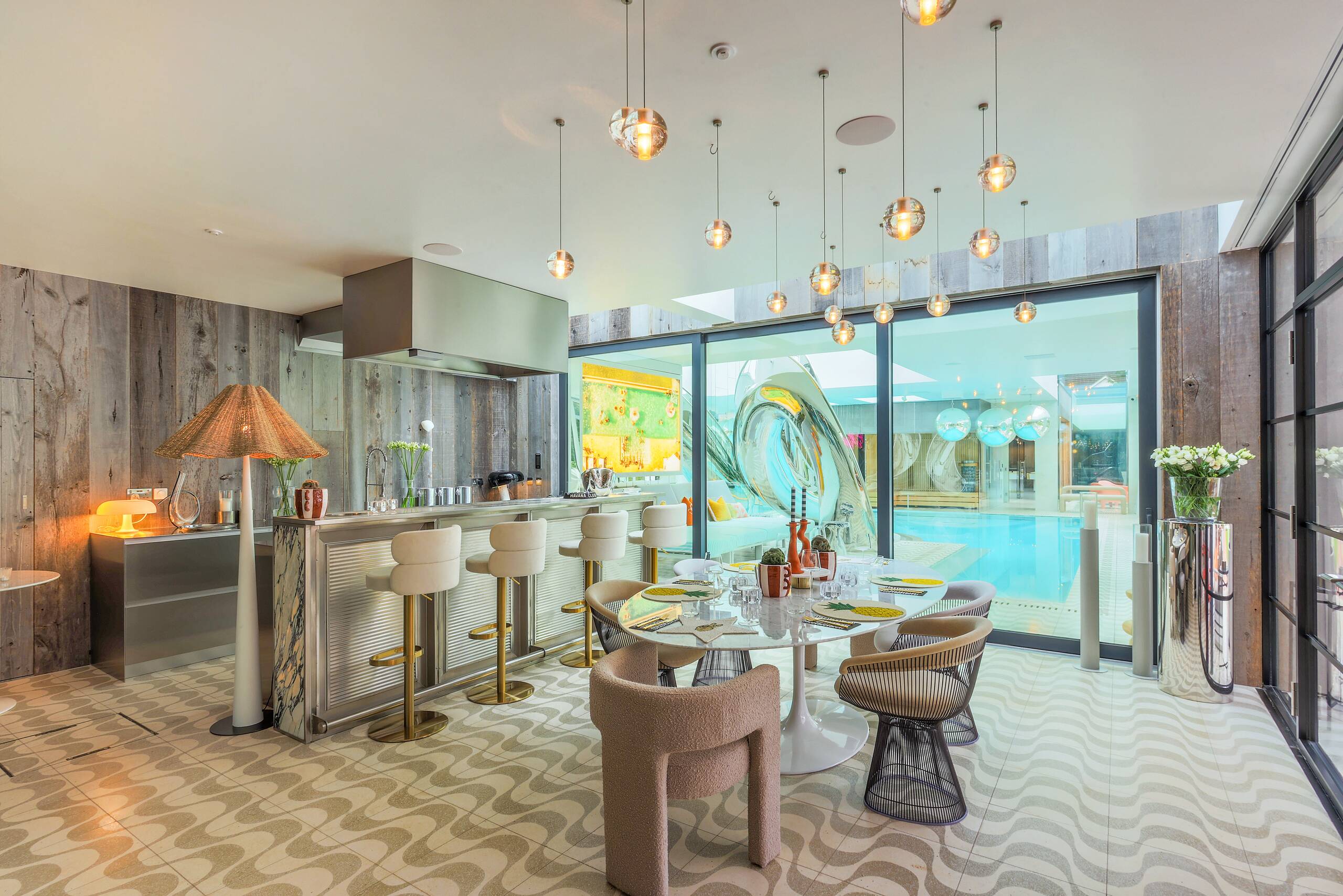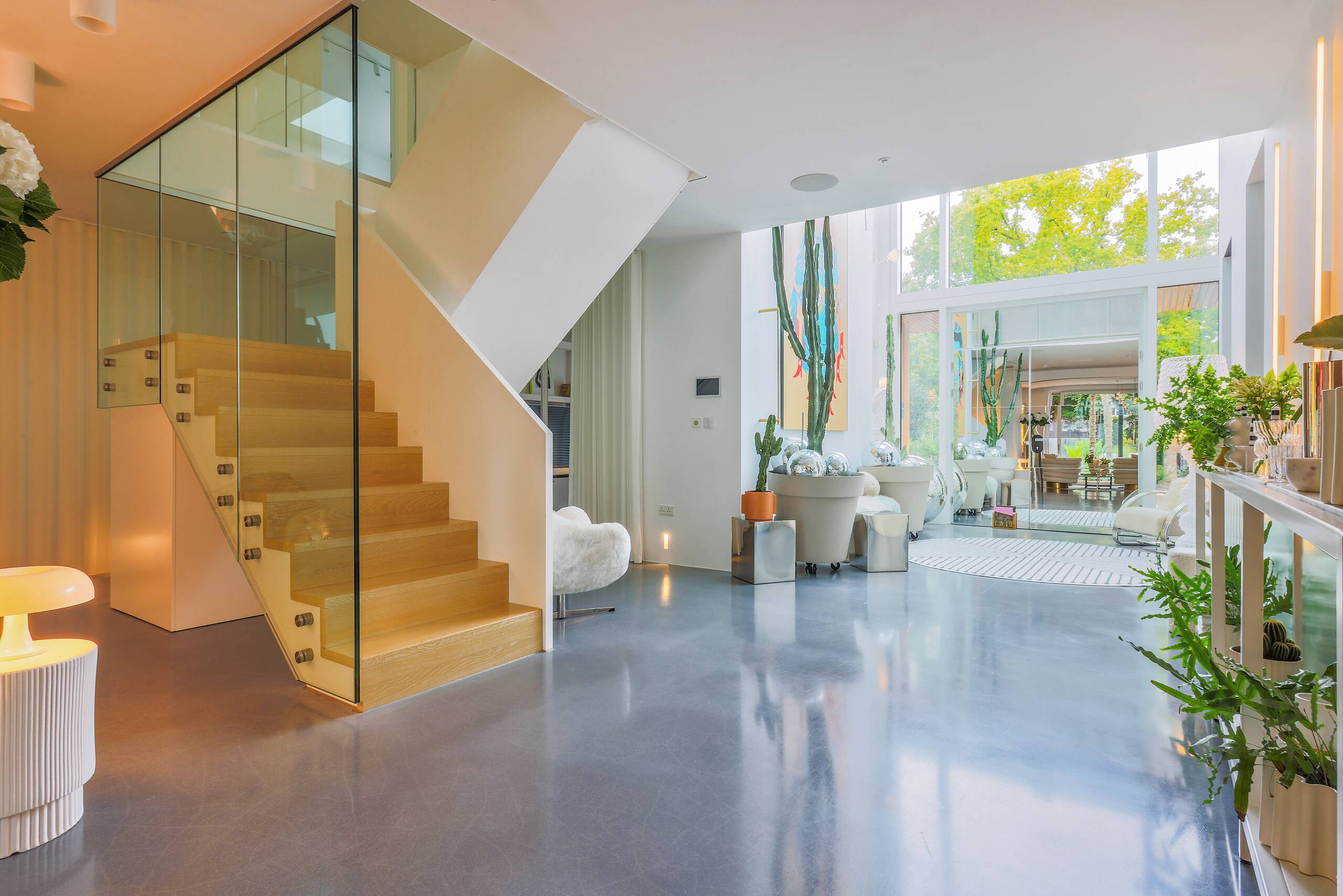 A striking feature is the separate pool house, seamlessly connected to the main building by a glass link. Continuing the home’s minimalist design, the large windows flood the space with natural light and open out to the garden. Together, the main house and pool house create a cohesive architectural ensemble that blends modern design, comfort, and sustainable living.