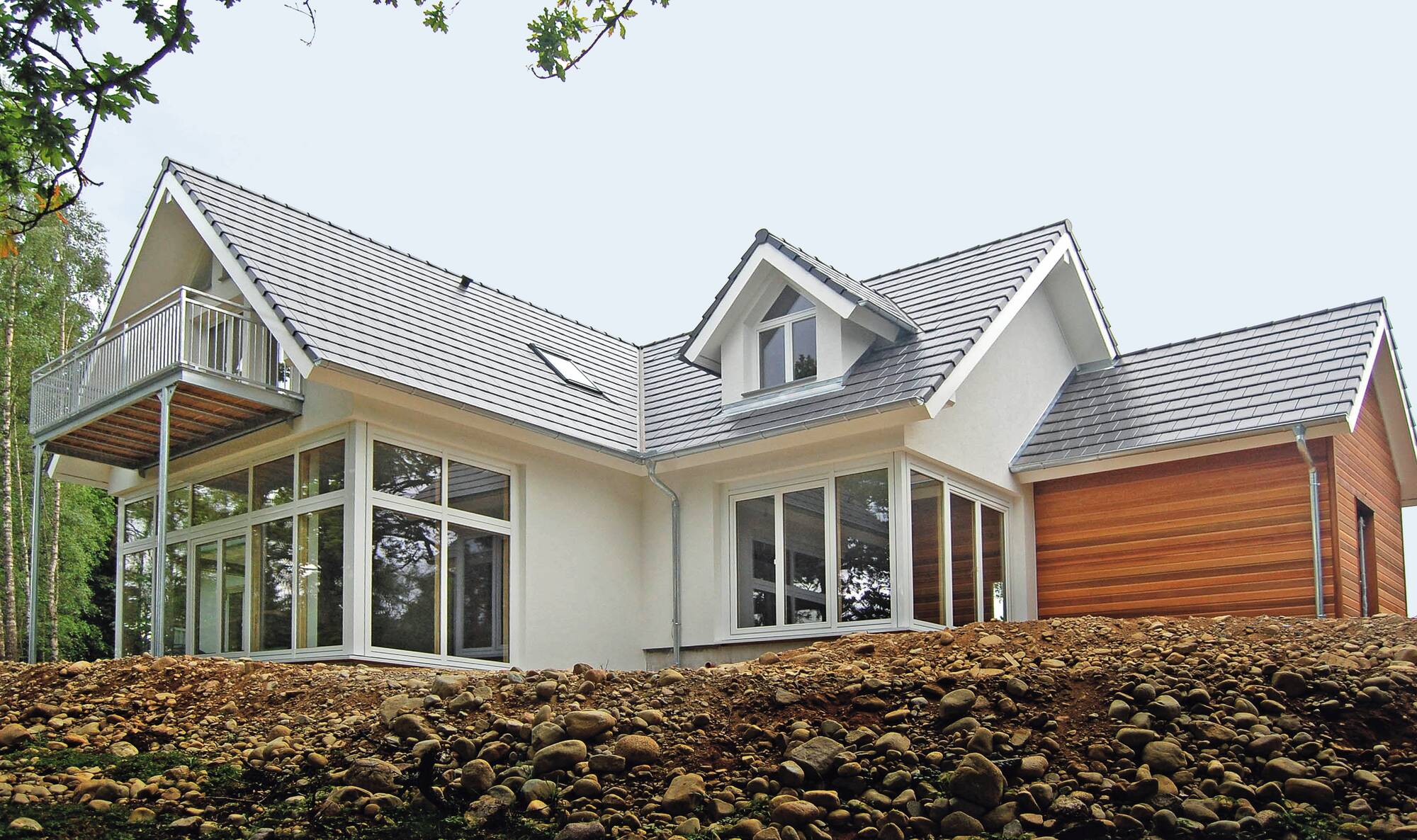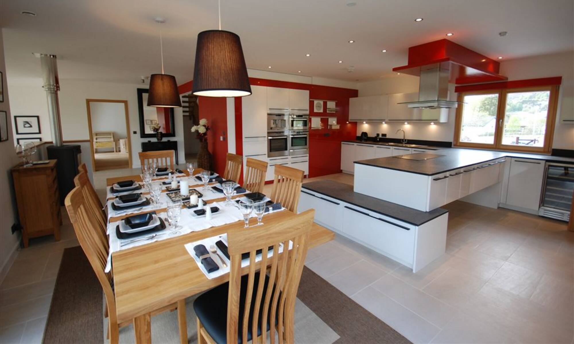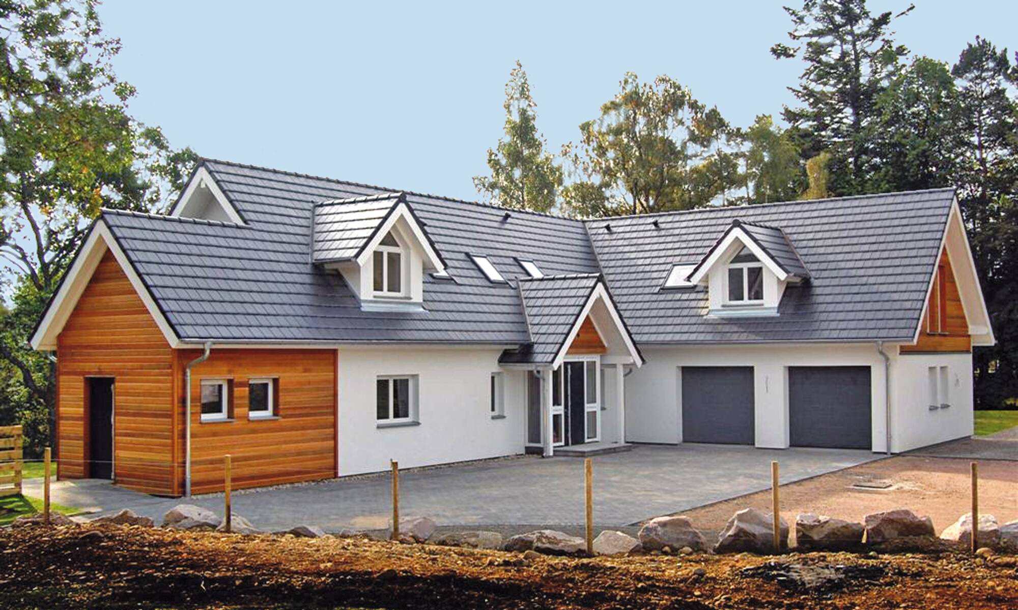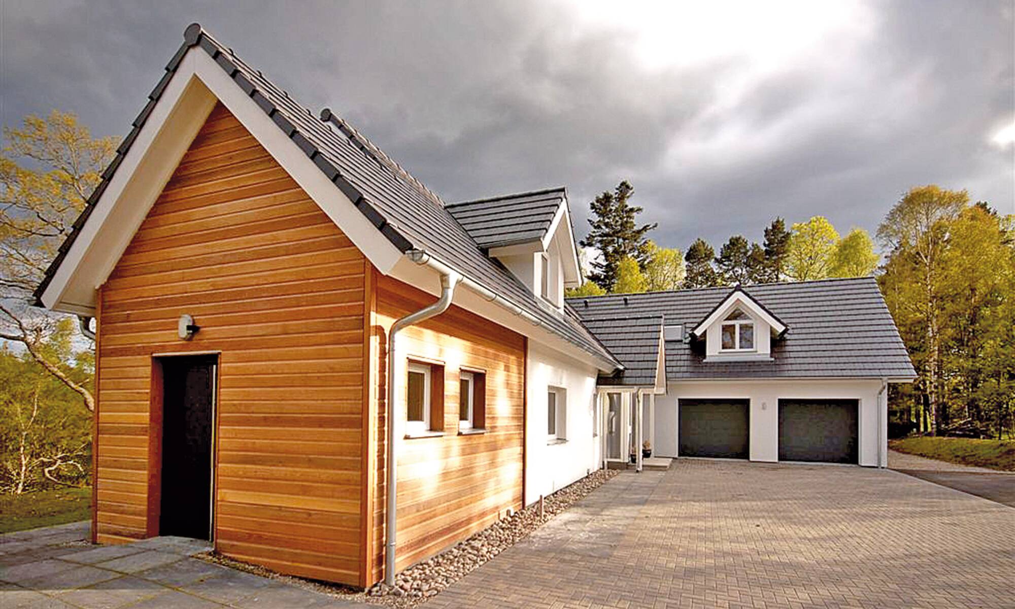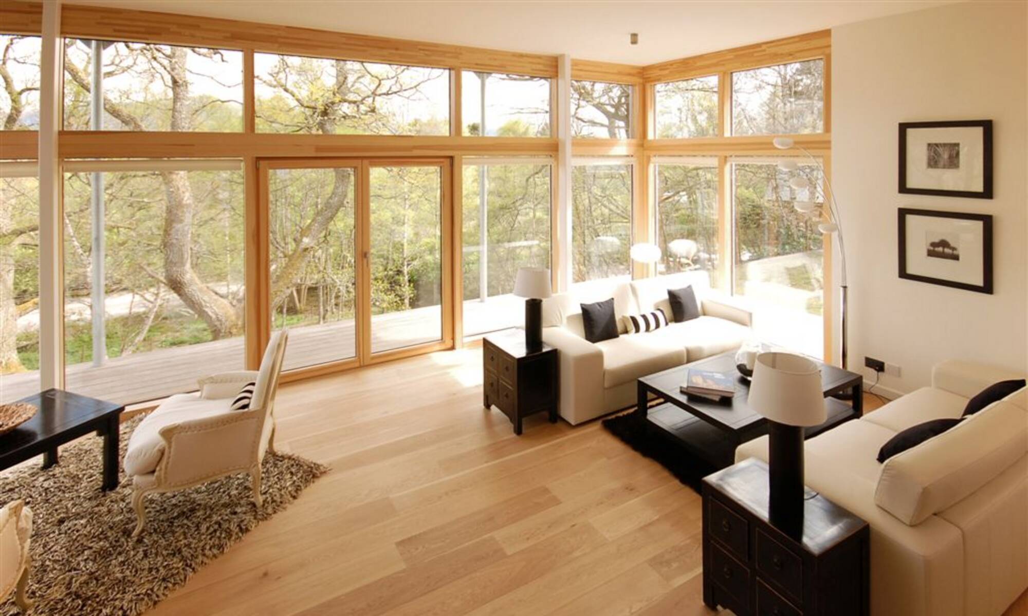 Surrounded by the beautiful scenery of Cairngorms National Park, Scotland, this property encompasses the WeberHaus commitment to eco-friendly house designs and exceptional construction quality. Working with over five decades of experience, this welcoming property was constructed in individual parts by our expert German house builders at our factory in Rheinau-Linx, and then assembled at the site in Scotland. After thorough client consultation, our residential architects designed a cosy, glass-fronted prefab home that emphasises relaxation and provides a place for the client and their family to get away from the busyness of everyday life. With a traditional look on the outside, the interior style reflects modern family living with an open-plan living room and dining area, spacious bedrooms and a warming aesthetic utilising wood with a neutral base palette and complementary accents.