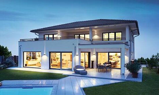 Discover our classic villas that stand as timeless icons of luxury and elegance. As one of the leading prefabricated home manufacturers specialising in timber construction, we are proud to build residences that not only offer ample space and stunning views, but also create an imposing presence that speaks volumes about your sophisticated taste and lifestyle. Whether set in the midst of lush landscapes or in the heart of the city, our homes captivate with their craftmanship and impressive architectural beauty. Entertain your guests in representative living areas, relax in cosy bedrooms or enjoy moments of solitude in elegantly designed private spaces - each room is a testament to the unparalleled attention to detail that characterise our luxurious townhouses.