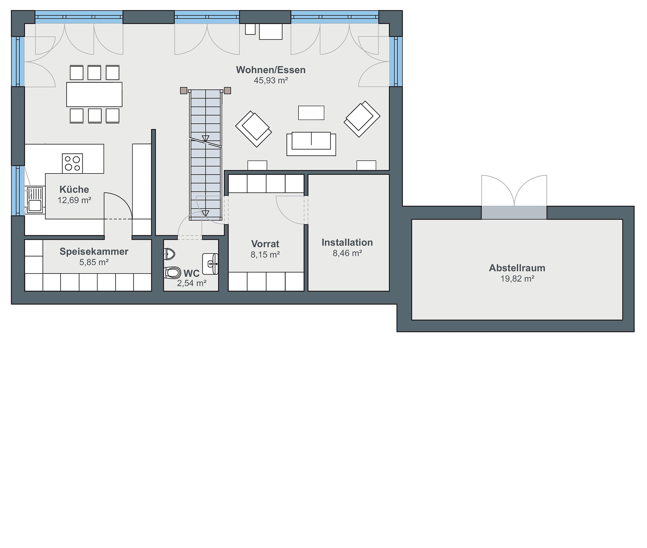 Für ein Plus an Komfort und Sicherheit im Haus sorgt das Smart-Home-System. „Da das Gebäude nicht dauerhaft bewohnt ist, nutzen wir die Anwesenheitssimulation“, erklärt die Hausbesitzerin. „Zudem war uns wichtig, dass wir viele Funktionen aus der Ferne bedienen können. Beispielsweise fahren wir die Temperaturen nach oben, sobald wir uns auf den Weg zu unserem Ferienhaus machen. Wenn wir ankommen, ist es bereits wohlig warm.“ Die notwendige Energie für die gesamte Technik erzeugen Charlotte und Andreas Pflüger mithilfe der leistungsstarken Photovoltaikanlage auf dem Dach selbst. Überschüssiger Strom fließt zunächst in den Stromspeicher, wo er zwischengespeichert wird, bis die Eheleute ihn benötigen.